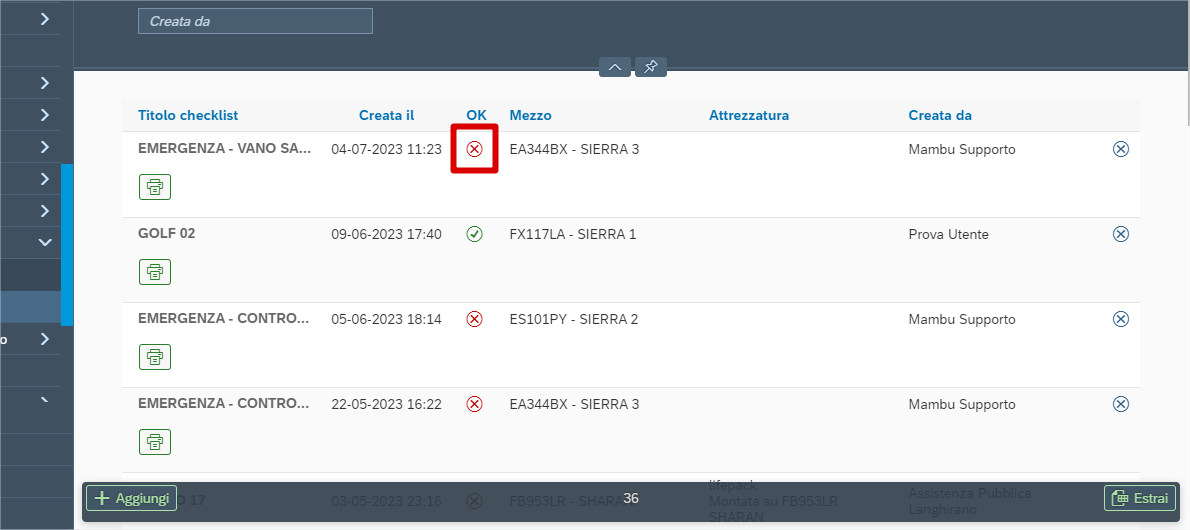 Nel caso ci fosse una X rossa vuol dire che c'è stato un errore, che premendo sul bottone “stampa” verrà evidenziato.