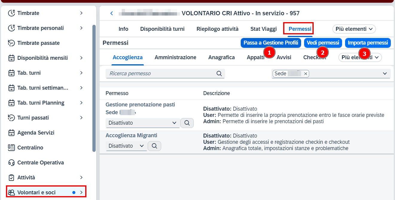 Sarà possibile ignorare la gestione che utilizza i profili e continuare ad usare la precedente versione che permette di impostare i singoli permessi sul volontario.