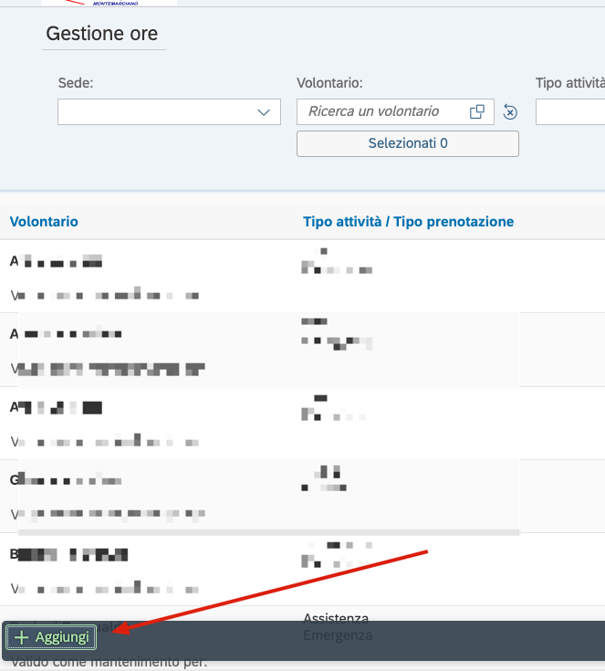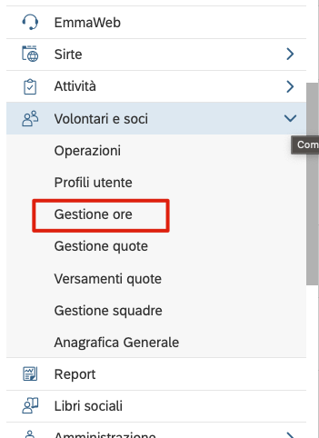 Per conteggiare le ore di formazione svolte dai volontari e' possibile inserire manualmente della ore da “Gestione Ore”