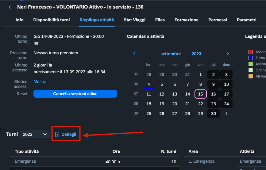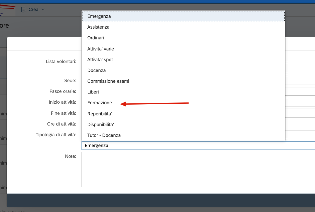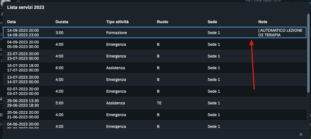 Le “ore di formazione” possono essere inserite in maniera automatica memorizzando un volontario presente alle lezioni all’interno dei corsi.