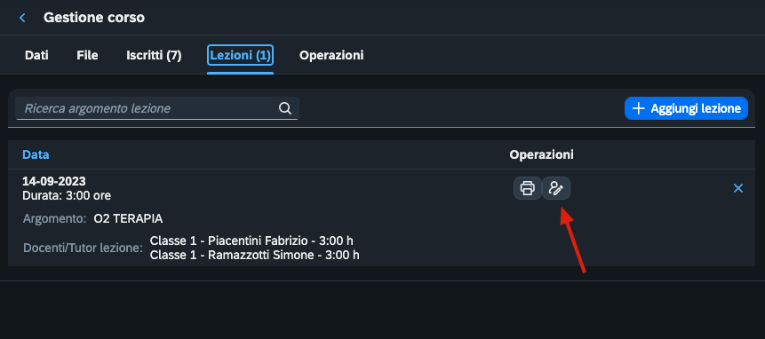 Inserita una lezione e' possibile premere sull’apposito tasto:
