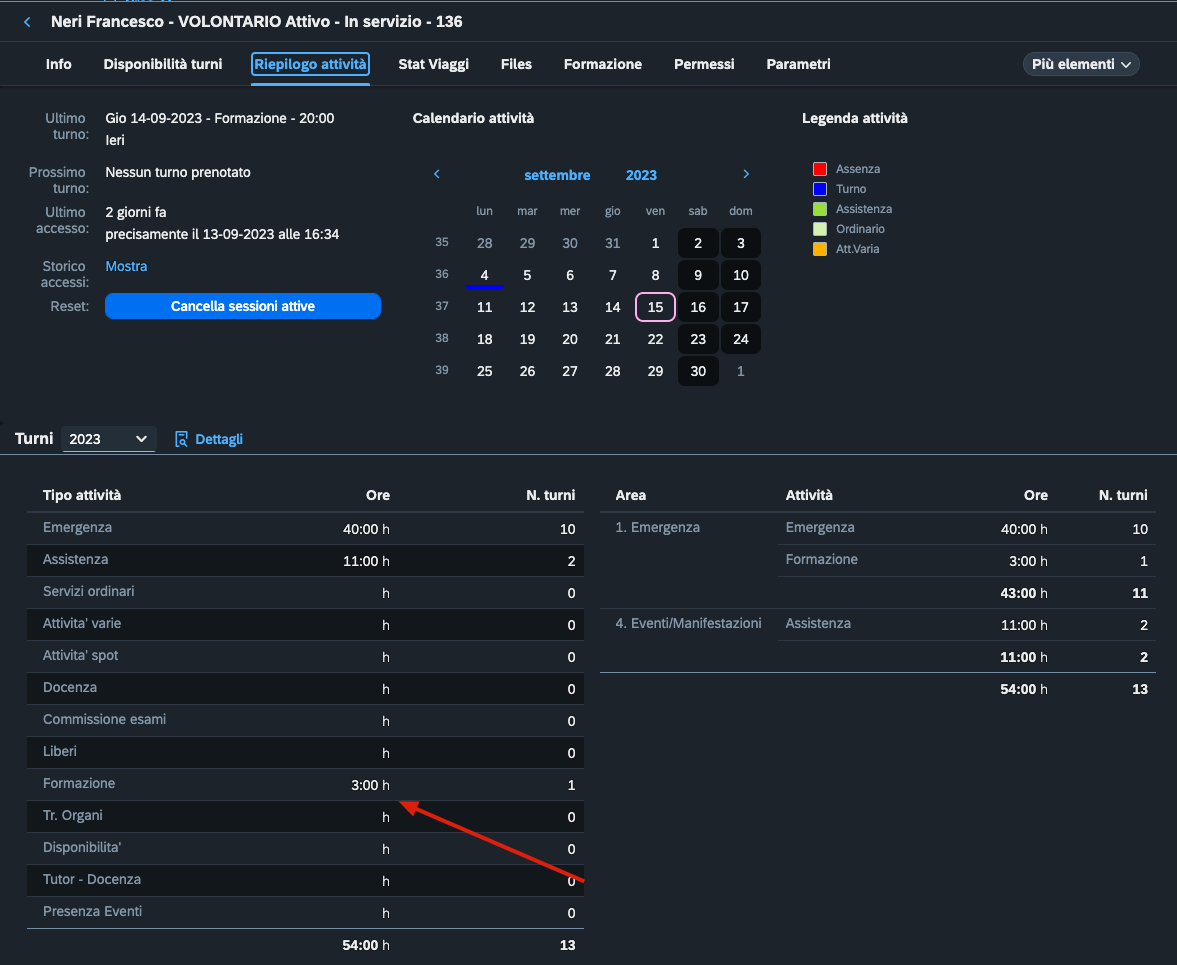 Entrando quindi nel profilo del volontario le ore di formazione verranno conteggiate: