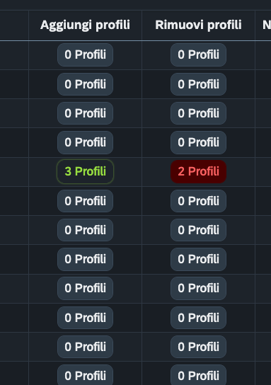 Una volta premuto su “SELEZIONA” vedrete il tasto colorare di verde se siete nella sezione “Aggiungi profili” o di Rosso se siete nella colonna “Rimuovi profili”