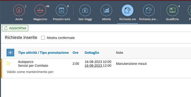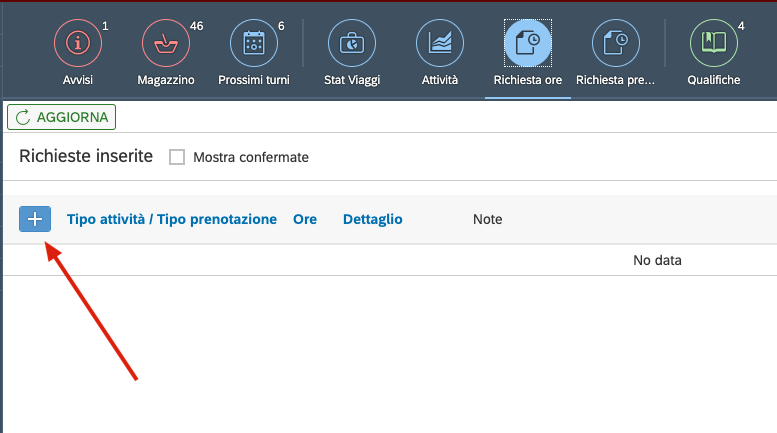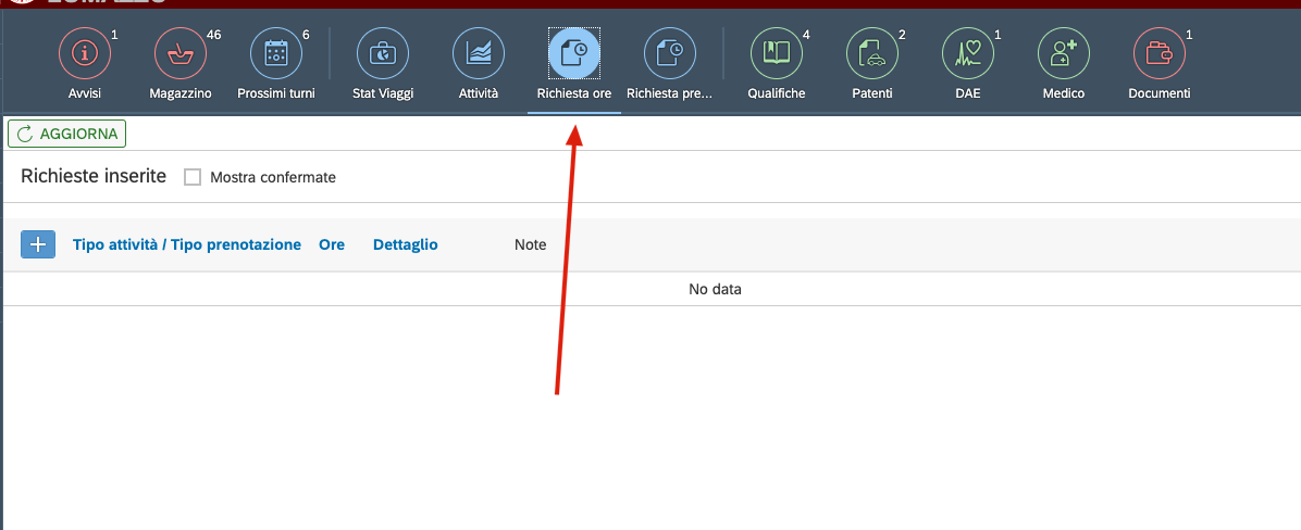 Dalla bacheca esiste il tasto “Richiesta ore”