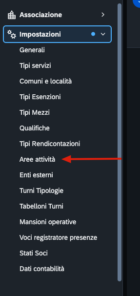 IMPOSTAZIONI - AREE ATTIVITA'