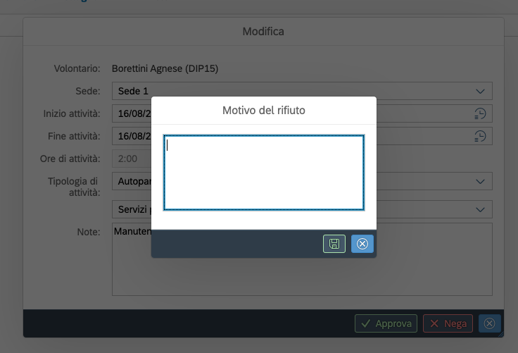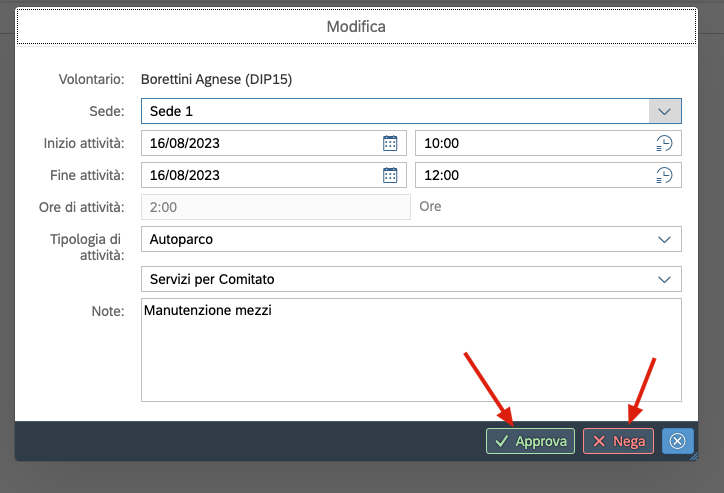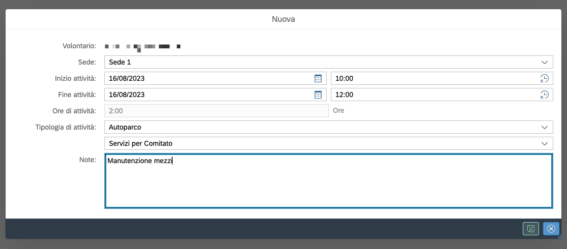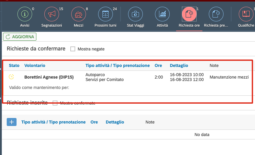 I volontari possono in autonomia richiedere che gli vengano riconosciute delle ore per attivita' che hanno fatto ma che, per qualche motivo non e' stato possibile tracciare sul sistema.