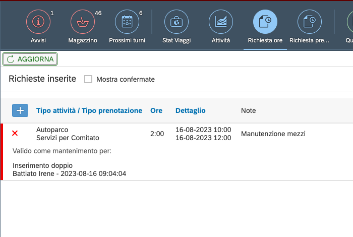 Gestione richiesta ore