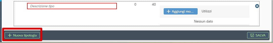 Clicca sul pulsante Nuova tipologia