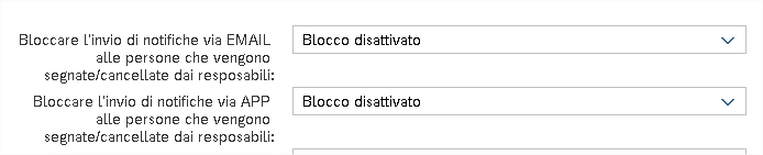 Normalmente Mambu invia una notifica ad ogni persona che viene inserita o cancellata da un turno da un altro utente. Se si vuole impedire che Mambu invii queste notifiche è possibile attivare il blocco: