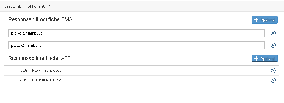 Schermata di inserimento dei responsabili che riceveranno le notifiche