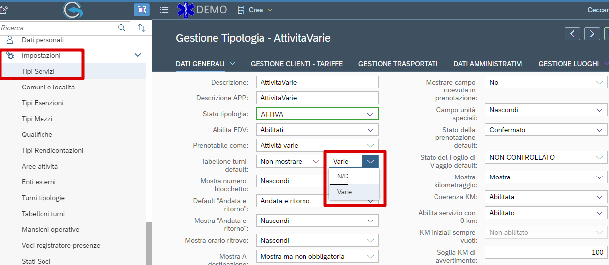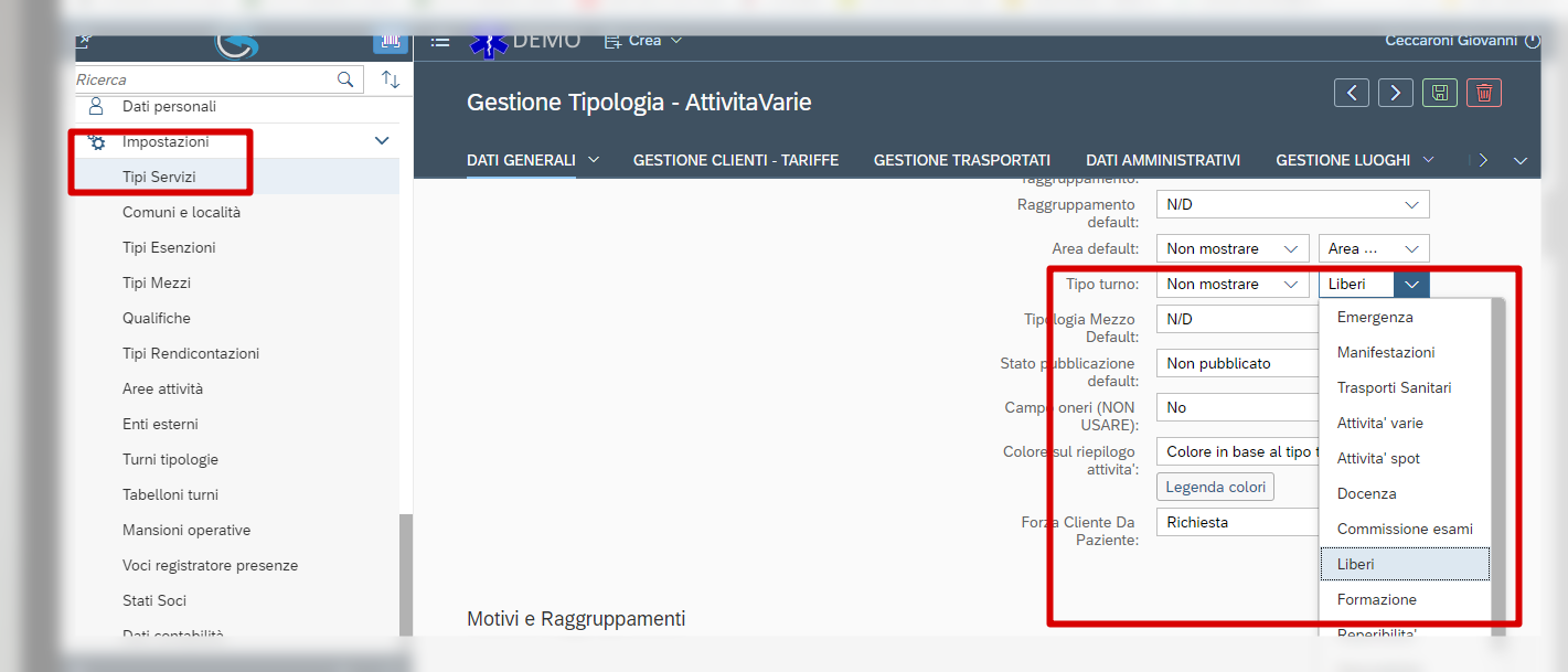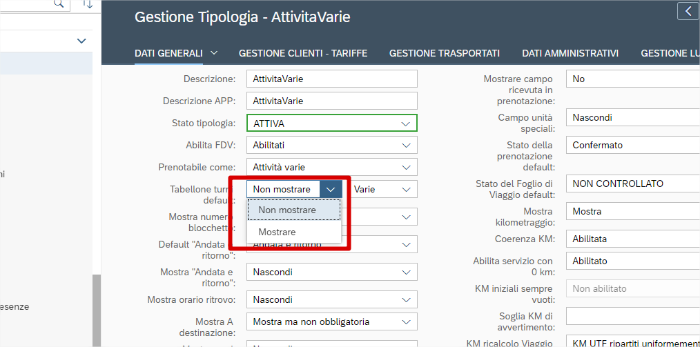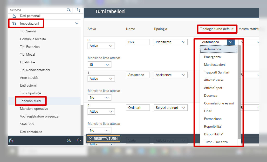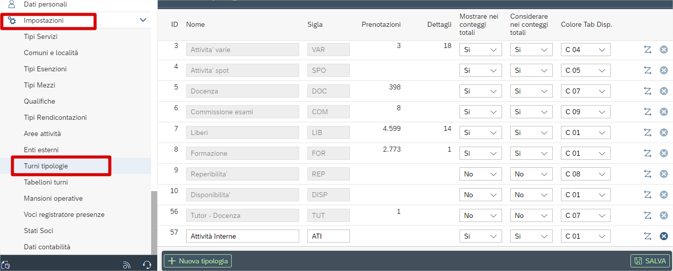 Esiste anche lo stesso trattamento per “tipologia turno” (normalmente viene nascosto per lo stesso motivo): lo troviamo sempre all’interno di “tipi servizi”.