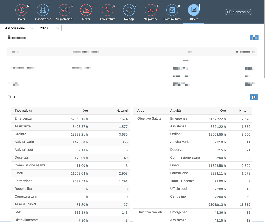 Ci sono 3 macro-categorie di prenotazioni: “assistenze” sono tipo le assistenze sportive che possono prevedere anche un numero maggiore di mezzi e non so se avrò pazienti oppure no, “servizi ordinari” sono i servizi classici che un ambulanza svolge (es trasporti dei pazienti), mentre “attività varie” è il resto (es riunione, gestione dei migranti).